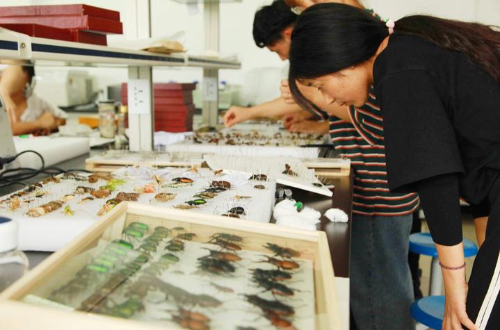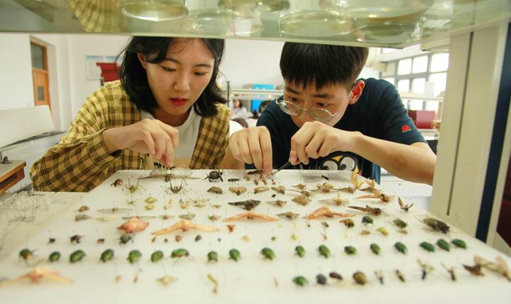 如今,在该校15号学院楼的标本室里,凤蝶、蜻蜓、独角仙、金龟子、竹节虫、蜡蝉、蟑螂、蚊子、红袖蜡蝉……完成昆虫捕捉以后,学生们还根据不同昆虫所属的目、科、属、种,按照标本制作的要求,将昆虫进行分类制作、摆放,整个实验室里的昆虫显得特别有艺术感。