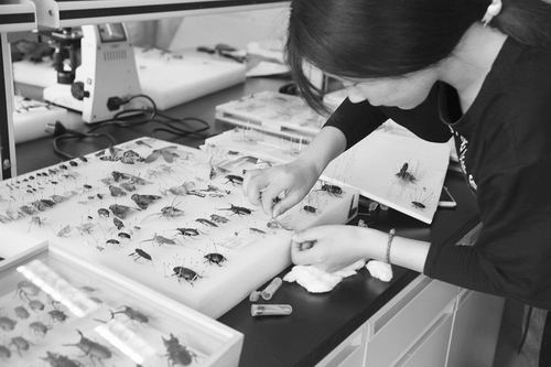 为了抓到满意的昆虫、制作高质量的标本,他们在植物保护系教师王吉锐的指导下,运用多种战术与“海陆空”多种武器寻找并捕捉昆虫。有些学生甚至在和昆虫的“战斗”中光荣负伤。截至目前,植保专业的学生们战果累累——抓获各类昆虫数以万计,完成高质量标本数千份,在实验室里建立了涉及100多个科的昆虫军团。
