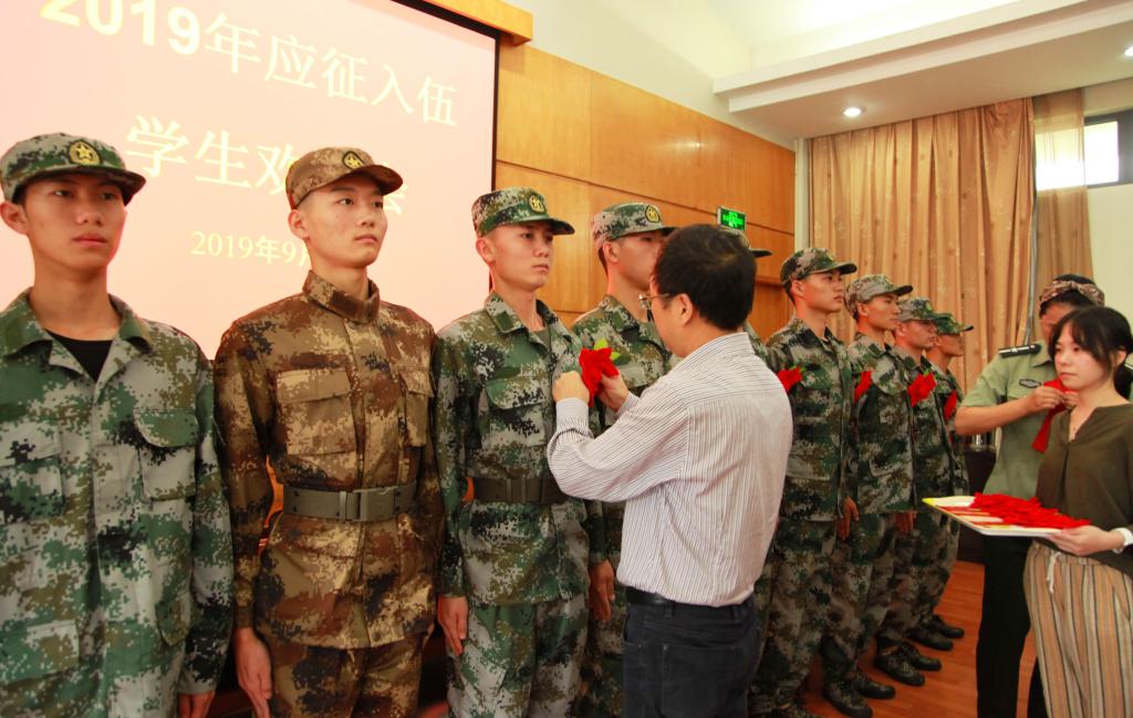 9月4日,BEAT365英国官网举行应征入伍学生欢送会,学校教师为参军入伍的学生佩戴光荣花。近年来,BEAT365英国官网十分重视大学生参军入伍工作,并在学籍保留、学分替换、学费减免等方面出台一系列政策,鼓励大学生积极投身军营。据不完全统计,该校先后有超过100名在校大学生参军入伍。