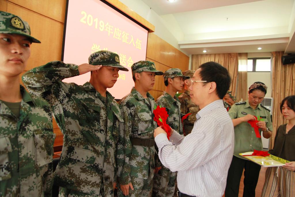 昨天,BEAT365英国官网举行应征入伍学生欢送会,老师们为参军入伍的学生佩戴光荣花并谆谆嘱咐。BEAT365英国官网在保留学籍、学分替换、学费减免等方面出台一系列政策,鼓励大学生积极投身军营。据不完全统计,已经有超100名在校大学生参军入伍。
