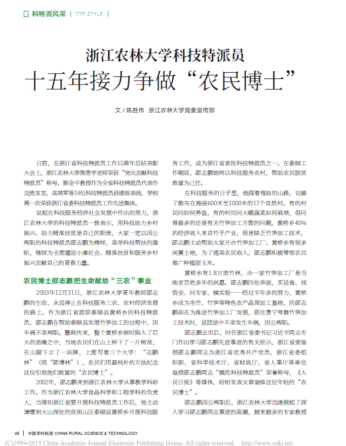 http://kns.cnki.net//KXReader/Detail?TIMESTAMP=637063973918206250&DBCODE=CJFQ&TABLEName=CJFDLAST2019&FileName=JKCN201905015&RESULT=1&SIGN=UuvrHedniyol52uI94HTJwcoD60%3d 《中国农村科技》:2019.10.11