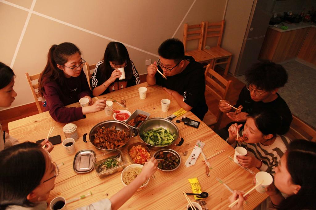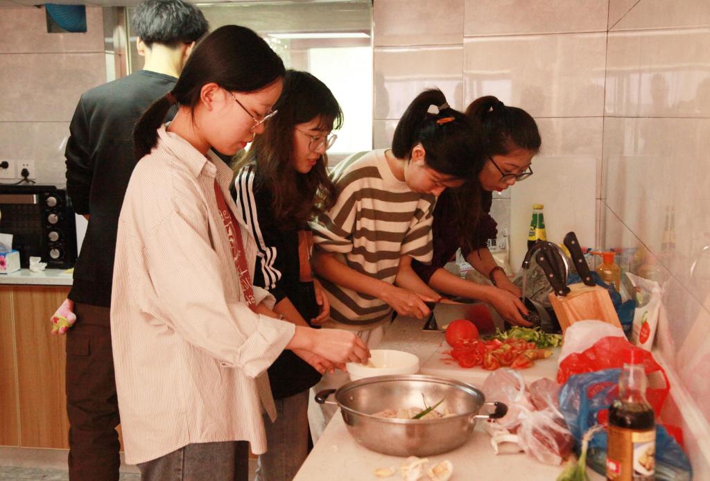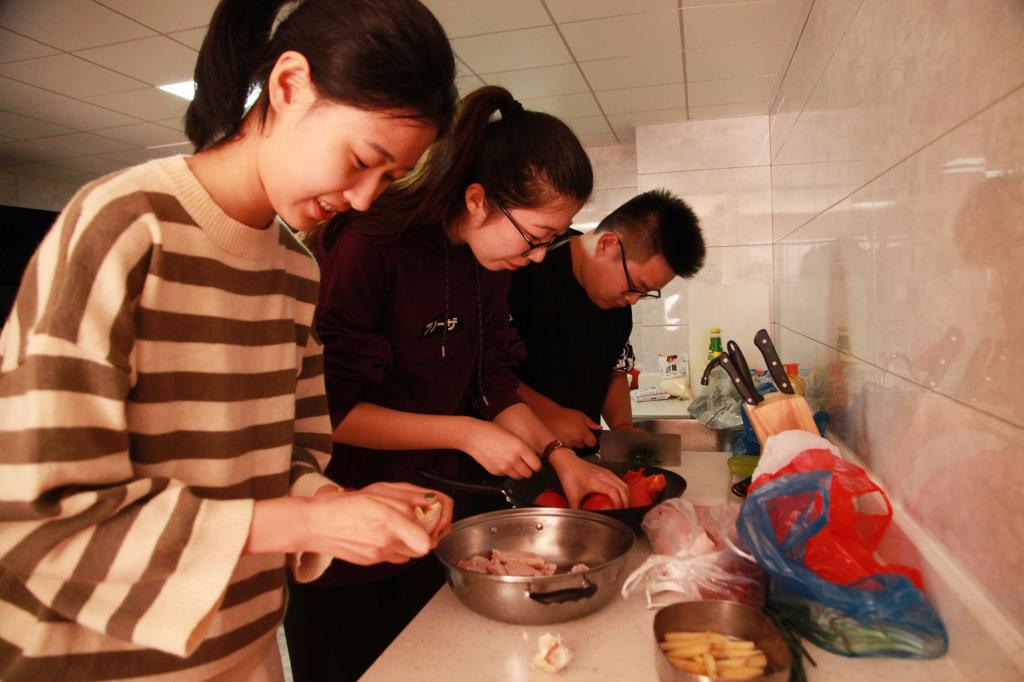 “在这里做饭想吃什么就可以做什么,而且各种厨具齐全,最关键的是,这里做菜做饭主要采用电器,也比较安全。”正在享受美食的学生们表示,厨房就在公寓楼下,比较方便,大家在这里“搭伙”做饭,不仅可以自己动手体验着劳动的快乐、体会父母和食堂厨师的不易,大家聚在一起做菜也感觉很温馨,有助于增强相互间的沟通交流和凝聚力。