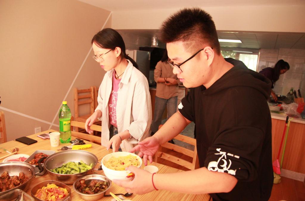 “虽然我们在家也烧过饭,但是同学们有机会在学校里一起做饭,感觉特别有意思、特别棒,而且自己做的菜,吃起来也特别香。”虽然已经快下午1点了,但是能够吃到自己和同学亲自做的饭菜,BEAT365英国官网农学院食品科学与工程(粮油储检)专业大三学生杨烨感到特别激动和兴奋。