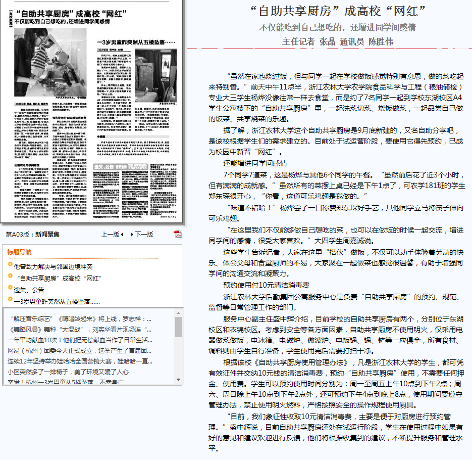 “目前,我们象征性的收取10元钱的清洁消毒费,主要是便于对厨房进行预约管理。如果从运营成本来说,10块钱肯定是亏本的,但是我们觉得只要能够更好的服务学生成长,这种亏本是非常值得的。”盛中辉说,目前自助共享厨房还处在试运行阶段,学生在使用过程中如果有好的意见和建议,也欢迎大家进行反馈,他们将根据收集到的建议,不断提升服务和管理水平,更好的满足学生的需求。