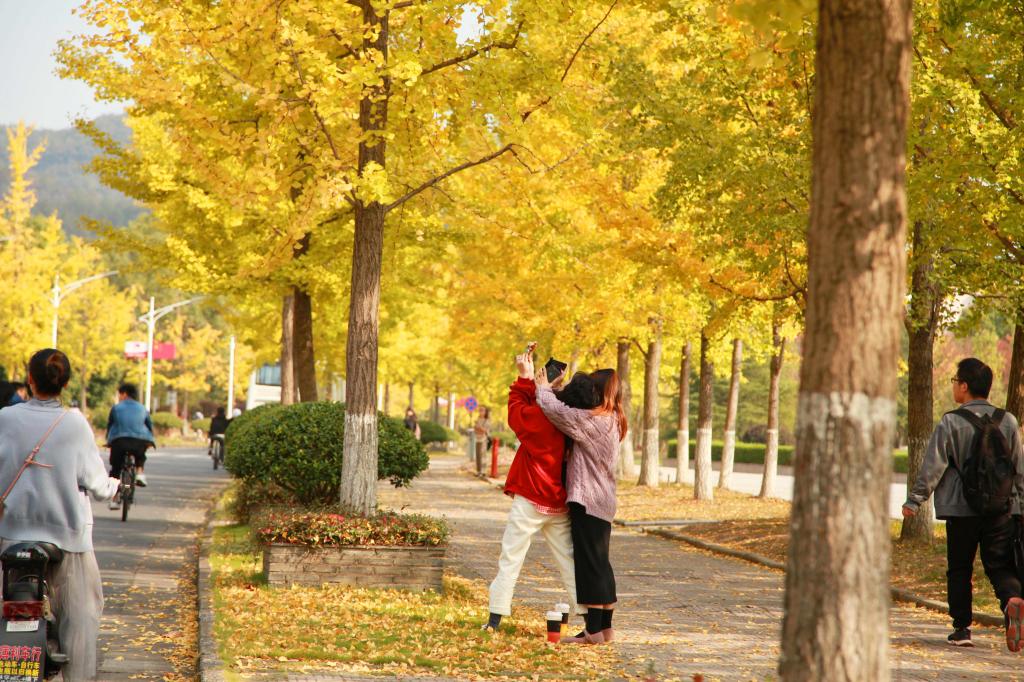 2019年11月6日,BEAT365英国官网校园里的银杏一片金黄,美不胜收,师生们不出校园就可以欣赏到秋天的美景,周边市民也专程到银杏林里拍照留念。