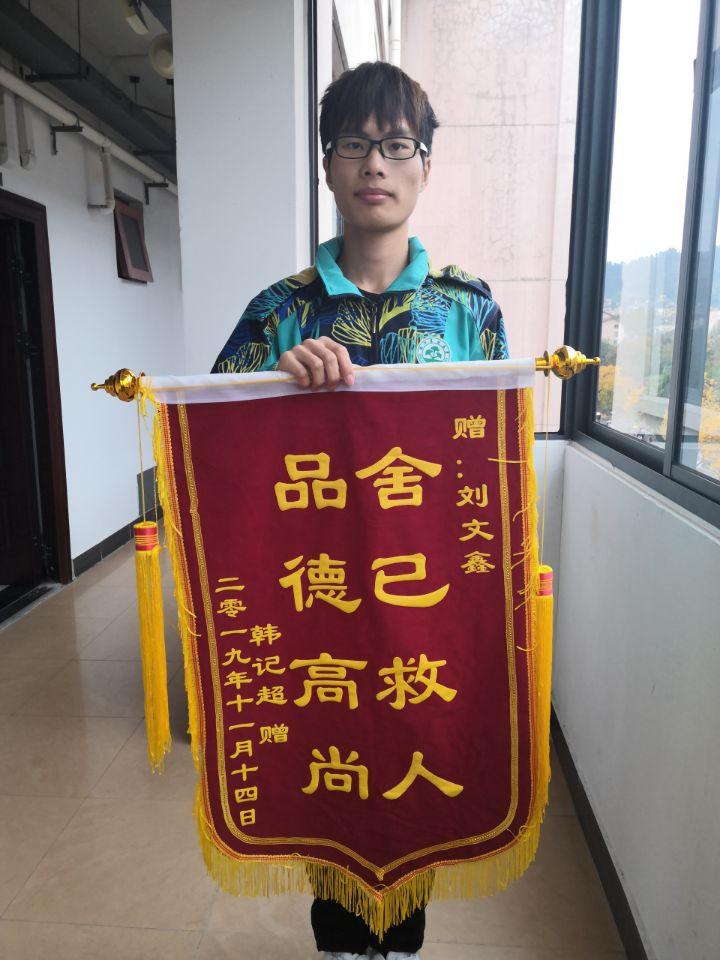 11月17日是周末,孩子妈妈联系上了刘文鑫,专程送来了锦旗,并硬塞给刘文鑫一个装着现金的信封表示感谢。19日那天,刘文鑫留下了锦旗,按照孩子妈妈给的地址,专门买了一箱牛奶专程去看望那个落水的孩子,并把那个装着现金的信封,原封不动的还给孩子妈妈。
