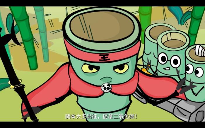 二氧化碳排放过多已经影响到人类赖以生存的地球环境。视频中,竹子被拟人化,被比喻为“吸碳王”。据悉,竹子本身具有吸碳功能,二氧化碳被竹叶吸收后,储存在竹节中,最后通过竹根藏进土里。