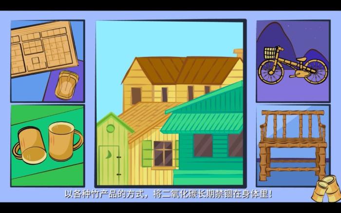 视频中介绍,竹子被制成各种竹制品,就能将二氧化碳长期禁锢。