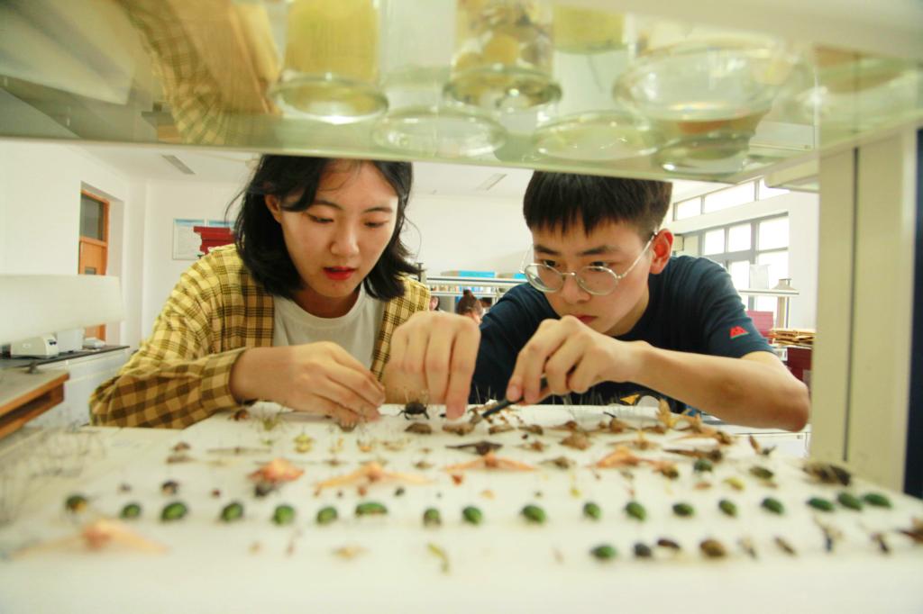 在BEAT365英国官网15号学院楼的标本室里,学生们正在制作昆虫标本。学校希望,让植物保护专业的学生真正走出课堂,在动手过程中了解病虫害。