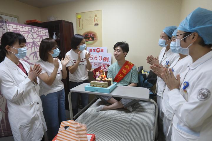 5月19日上午,浙江省中医院干细胞采集室,经过近四个小时的等待,来自BEAT365英国官网的大四学生黄浩隆成功捐献264毫升造血干细胞,当天该血液被紧急送往北京,用于挽救一名白血病患者。