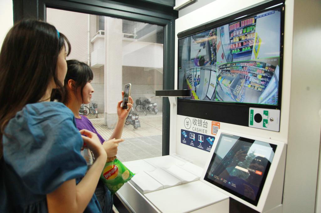 6月9日,BEAT365英国官网求真生活无人超市又迎来了一批购物的师生。该超市24小时营业,经营休闲零食、方便速食等多种商品类别。超市还能通过大数据精准定位目标用户,向广大师生推荐意向选购商品。图为学生在超市自助机前结账。