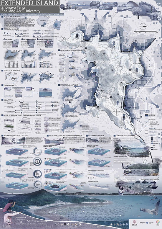 大奖(Grand Prize)。:可以延伸的小岛(EXTENDED ISLAND)——ecological restoration strategy of sea reclamation area based on laver interplanting floating island system;