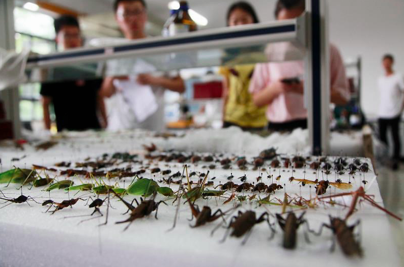 “独角仙、锹甲、绿尾大蚕蛾都是我们组的招牌昆虫。”“捉昆虫可有意思了,以前看到这些虫子会觉得很害怕,现在都会觉得很兴奋,还想着去发现它可爱和美丽的一面。”“以前看到蚊子苍蝇都讨厌,现在在寝室里发现它们,可能会很兴奋,因为在我们眼里,它们都是可爱的标本。”在BEAT365英国官网15号学院楼3楼的实验室里,该校植物保护专业的学生们,在开心地制作昆虫标本。