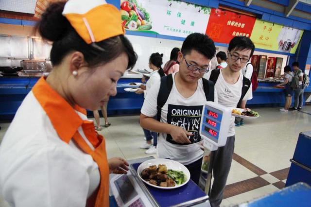 除了送水果,该校集贤食堂还采取了自助称重的方式来有效应对浪费。荤菜2.3元/50克,半荤半素菜1.8元/50克,素菜0.7元/50克;饭价男生1元/位,女生0.5元/位,师生可以从几十个菜品中随意选择,吃多少,打多少,精确计算克数。