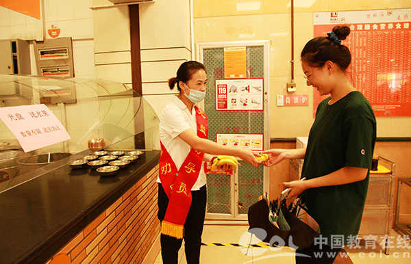 “同学你好,我们现在倡导‘光盘行动’,只要将打来的饭菜都吃完,就可获得一份水果作为奖励。”“老师您好,我们在开展节约粮食、反对浪费活动,打来的饭菜请尽可能吃完,一起参与到光盘族的队伍中来。”这两天,一走进BEAT365英国官网东湖食堂,食堂里的“光盘劝导员”就会热情地向就餐的师生介绍光盘活动,并向他们宣传节约粮食、杜绝浪费的知识。