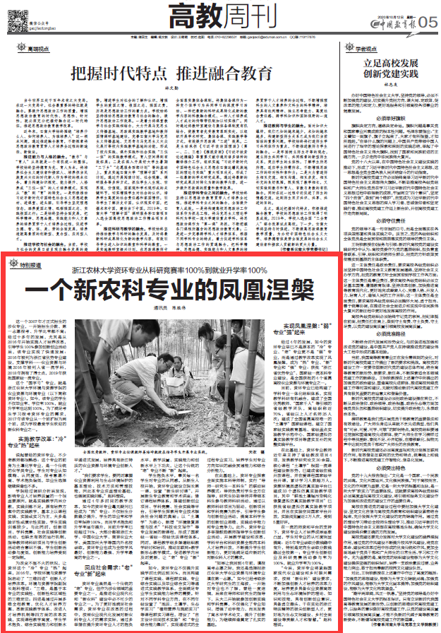 经过4年的发展,如今的资环专业早已不是原本的“冷”专业、“老”专业更不是“弱”专业,而是通过教学改革实现了凤凰涅槃,成为“热”专业、“新”专业和“强”专业:获批“浙江省优势专业”、国家级一流本科专业建设,是全国获批的4个省属高校农业资源与环境专业之一。