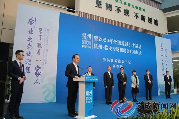 在致辞中,刘中华表示,人才是第一资源,创新是第一动力,今天的文成蓬勃发展充满机遇,我们比以往任何时候都需要创新,更渴求人才,更有条件成就人才,为此制定了力度空前的人才政策,在市人才政策基础上,实行120%的加码政策,并为来文就业创业的高校毕业生量身定制15项组合政策,提供从路费到住宿、见习、就业、租房、购房等全程全方位的补贴支持。