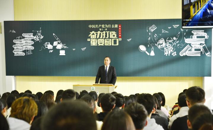 当天的思政公开课还开设了分会场、并通过网络进行直播。除了200余名学生在现场听课外,该校还有近5000名学生通过分会场一起上课,20000多名学生通过手机APP看直播、录播等方式共同学习了这堂内涵丰富的思政公开课。