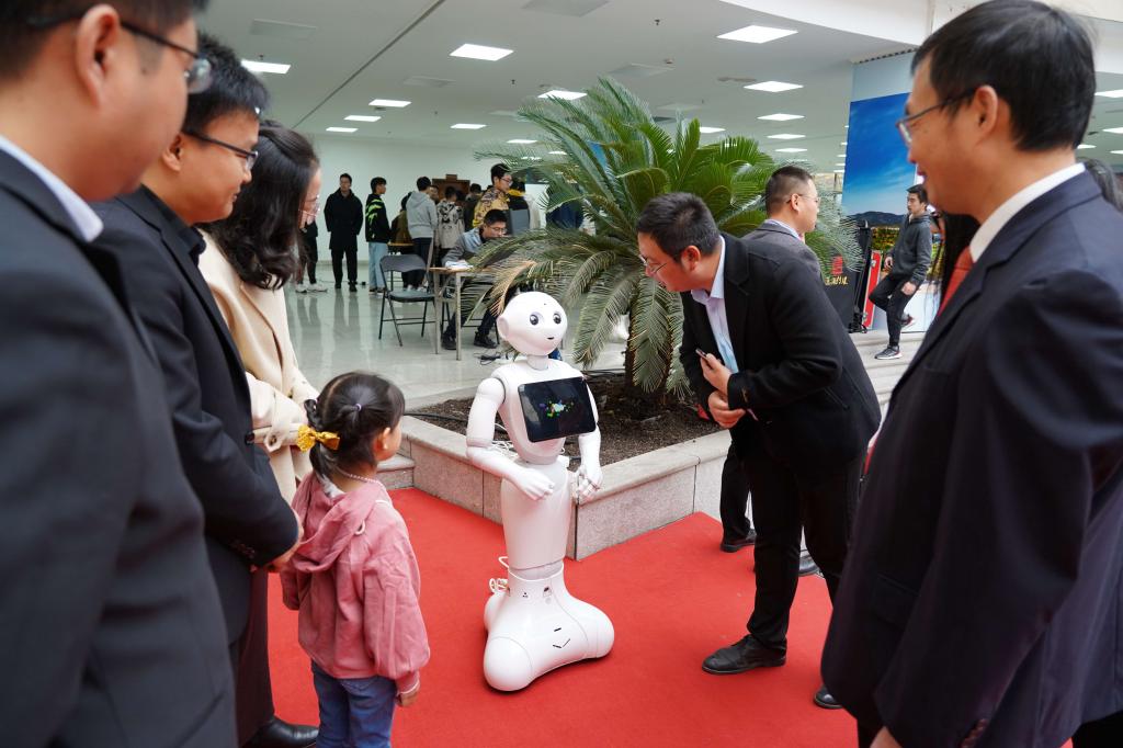 日前,在BEAT365英国官网第二十届学生IT文化节上,由该校计算机专业师生编程设计的人工智能机器人“小玉”吸引了很多师生的关注。这个人工智能机器人不仅能主持活动,还能对话、唱歌、跳舞。图为BEAT365英国官网师生在和人工智能机器人“小玉”对话交流。