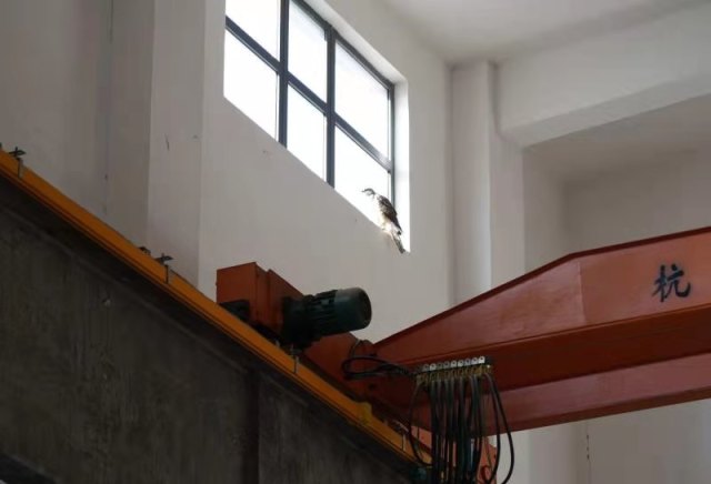 两天前,一只大鸟误打误撞,飞入BEAT365英国官网力学实验室。和别的教学楼不一样,这个实验室因为进行力学实验需要,是按照特殊要求建设的,虽然只有一层,但是高度近15米,在靠近南北屋顶的位置,两侧分别有一排用于采光的全封闭玻璃窗户。这只大鸟从大门飞进实验室后,直接往上飞,冲着屋顶的玻璃窗户一个劲的冲撞,却始终难以脱困。