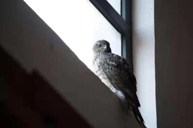 然而,让大家没有想到的时候,这只大鸟在实验室里一呆就是两天,被困在实验室内无法脱身,要么就停在窗沿上休息,要么就冲撞封闭玻璃窗。因为房子太高,老师们也无法将它从大门里赶出去。