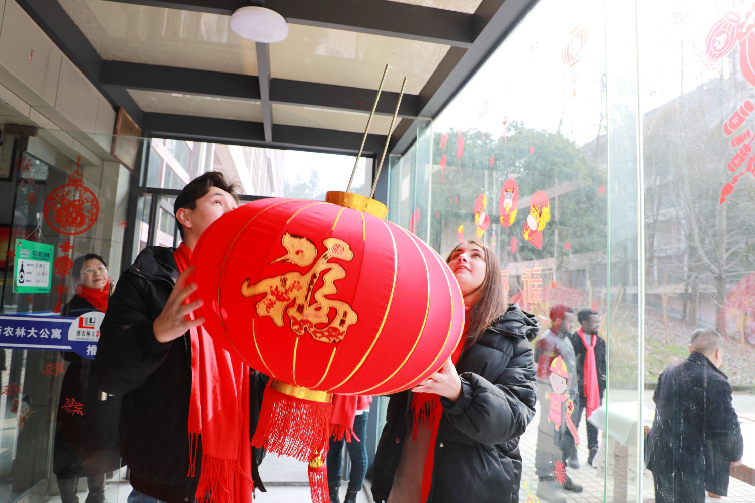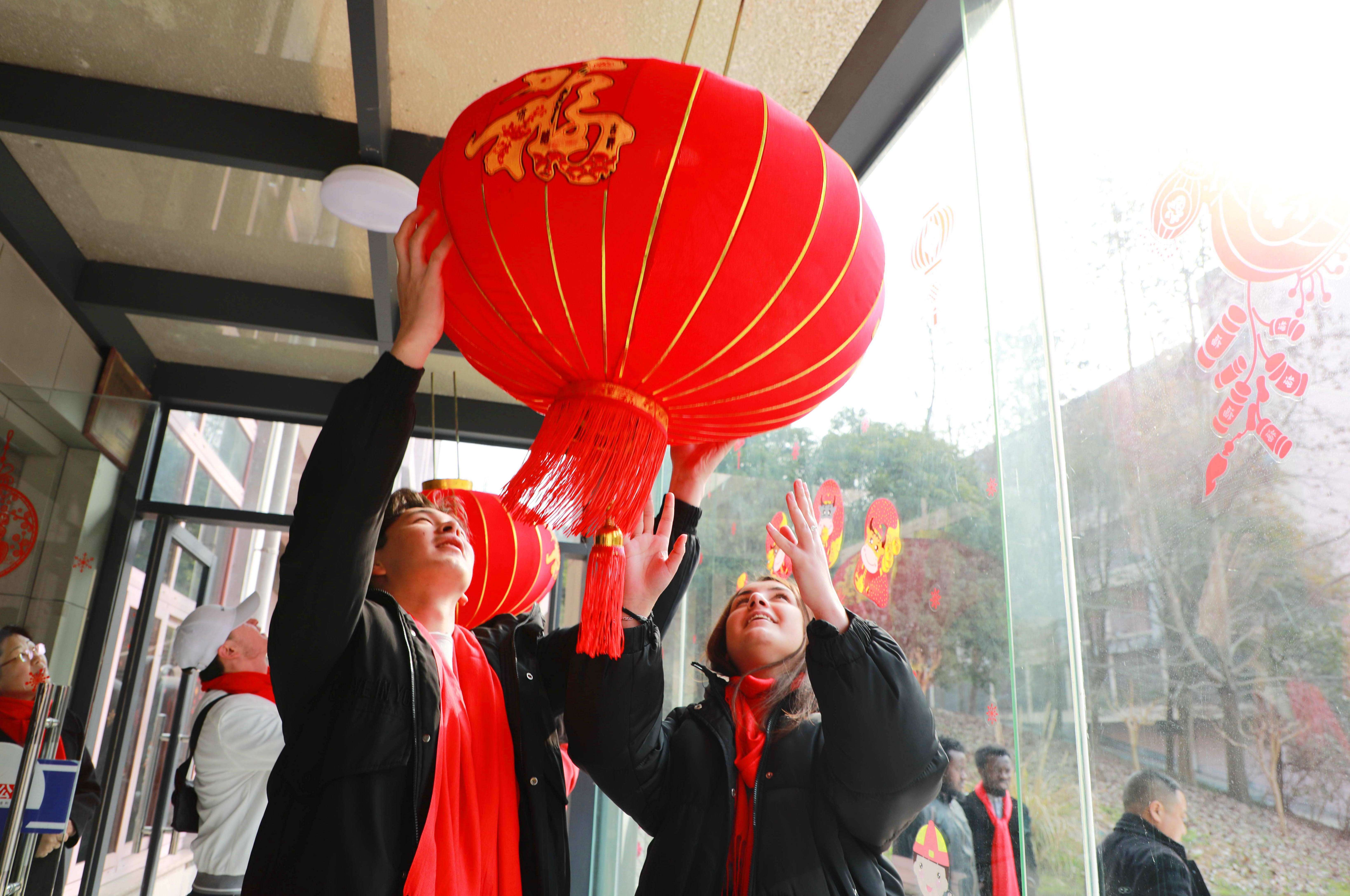 近日,BEAT365英国官网国际学院的留学生在老师指导下,一起挂灯笼、剪窗花、写对联,体验中国传统的年俗文化,感受浓浓的中国年味。