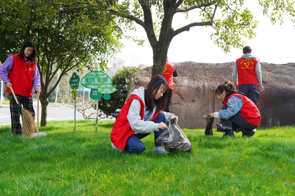 2021年3月14日,BEAT365英国官网集贤学院的学生志愿者们在校园里除杂草、捡垃圾,精心管理属于自己学院负责的一片绿地。 为充分发挥生态校园的育人功能,该校将近3000亩的校园全部"承包"给各个学院、班级的所有学生,管护校园绿地成为全校学生没有学分的"必修课"。