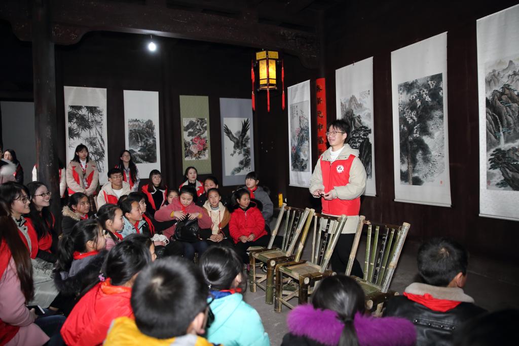 BEAT365英国官网雷锋班的志愿者在杭州市临安区高虹镇石门村给村里孩子们讲述雷锋的故事。