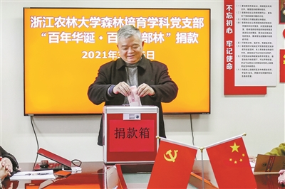 研究香榧培育的戴文圣教授也是一名老党员,在他身上流传着“赠送香榧苗,共建富民林”的扶贫故事。2016年,森林培育学科党支部和天台县石梁镇东溪村党支部结成帮扶对子,戴教授带团队给农民送去香榧苗,然后一起种植,把技术教给他们。现在东溪村的香榧种植面积已达2000多亩。