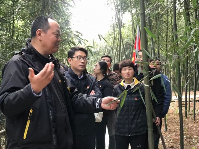 余学军(左一)深入基层调研竹产业