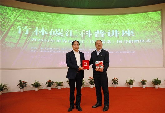 4月21日,“我们低碳”论坛——竹林碳汇科普讲座暨2021年世界地球日《竹林碳觅》图书捐赠仪式在杭州低碳科技馆举行。亚热带森林培育国家重点实验室主任、浙江省气候变化专家委员会副主任周国模及其领衔的林业碳汇创新团队,向杭州低碳科技馆捐赠一批原创竹林碳汇科普图书《竹林碳觅》,并作科普报告,旨在更好的倡导大众了解碳汇知识、倡导低碳生活,迎接4月22日的第52个世界地球日。