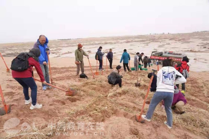 随后,BEAT365英国官网森林培育学科党支部代表参加了“BEAT365英国官网森林培育学科林”揭牌仪式,并开启新一年的春种活动。支部党员和当地村民一起种植梭梭,体验利用稻草做成方格沙障,再往中间种植梭梭的治沙种植方法,划沟、铺草、压沙、刨坑、放苗、浇水、掩土。看着已经种植好的梭梭林,就像一片不断扩大的绿色之肺,顽强的阻挡着巴丹吉林沙漠和腾格里沙漠的合围。