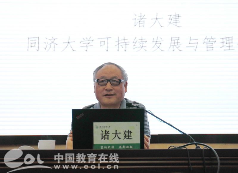 生态志愿者代表朗诵了生态主题诗歌,并为现场师生发放了学校自主选育的甘蓝“绿色种子”,向大家传播绿色、和谐的生态理念。我国著名的生态经济学家、可持续发展研究专家诸大建教授走上“天目大讲堂”,围绕中国绿色发展的主题,做了精彩的报告。
