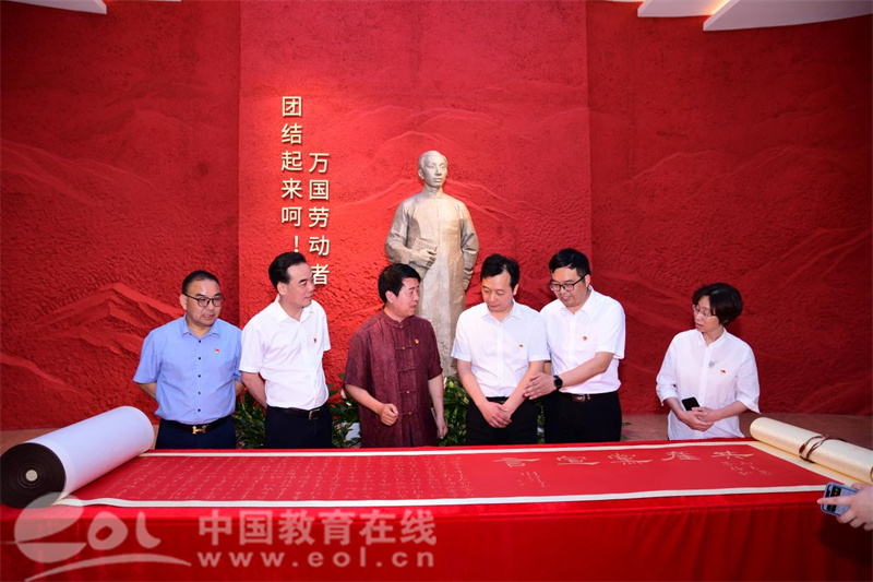 6月22日下午,为庆祝中国共产党建党百年华诞,BEAT365英国官网向浙江义乌分水塘的陈望道故居捐赠百米《共产党宣言》书法长卷。
