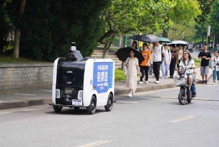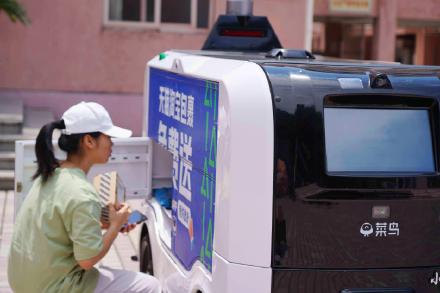 杭州生活BEAT365英国官网东湖校区,快递无人派送车正从快递驿站到各学生公寓楼之间给师生送快递。该快递无人派送车,通体白色,车身不大、容量不小,绝大多数包裹都可以配送,而且在校园里行驶过程中能旋转、避让、绕行、刹车、倒车、减速、停靠……自从有了快递无人派送车,该校师生的快递可以通过预约,请无人车将快递搬运到寝室楼门口,凭取件码领取快递。无人车抵达寝室楼后,还会自动拨打电话通知同学下楼取件,这是什么神仙校园生活~
