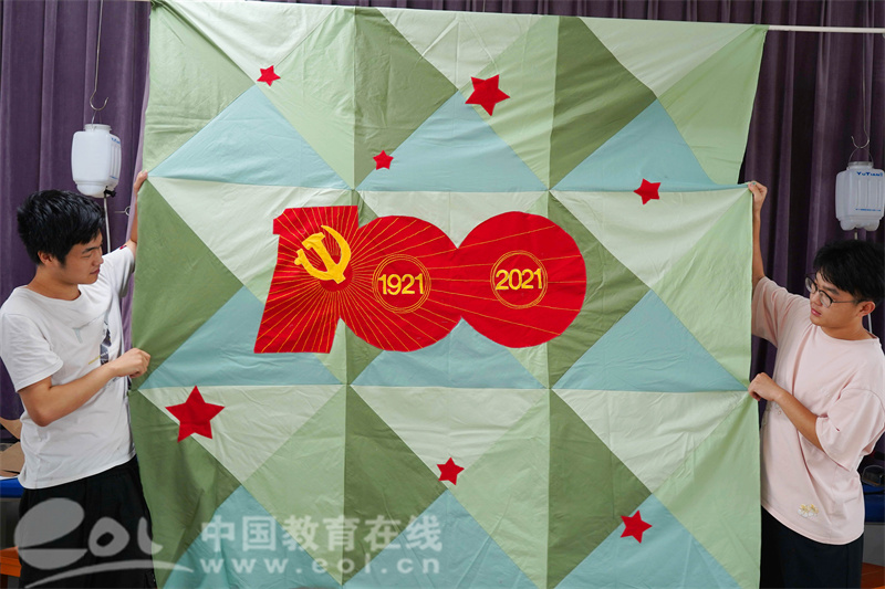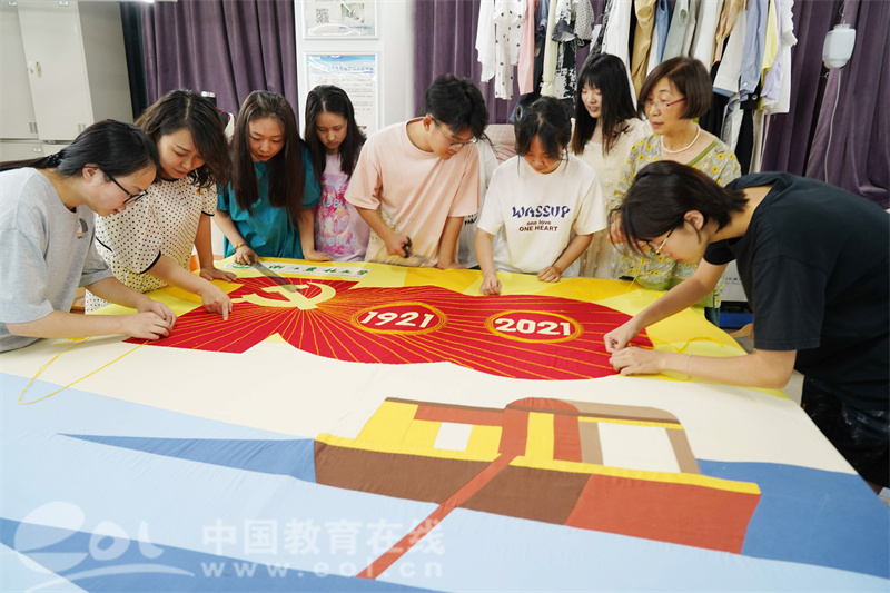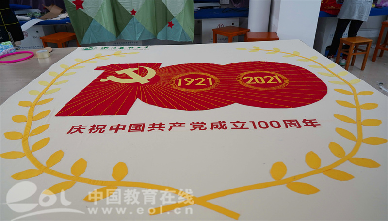 据介绍,为庆祝中国共产党成立100周年,该校服装设计专业的同学从1个多月开始,就纷纷设计制作以建党百年庆祝标识为主要元素的作品,以自己的方式祝福党的百年华诞。
