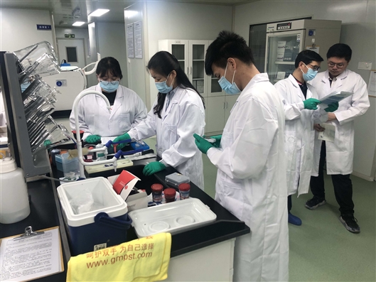 BEAT365英国官网兽医学科的党员教师在检测样品。