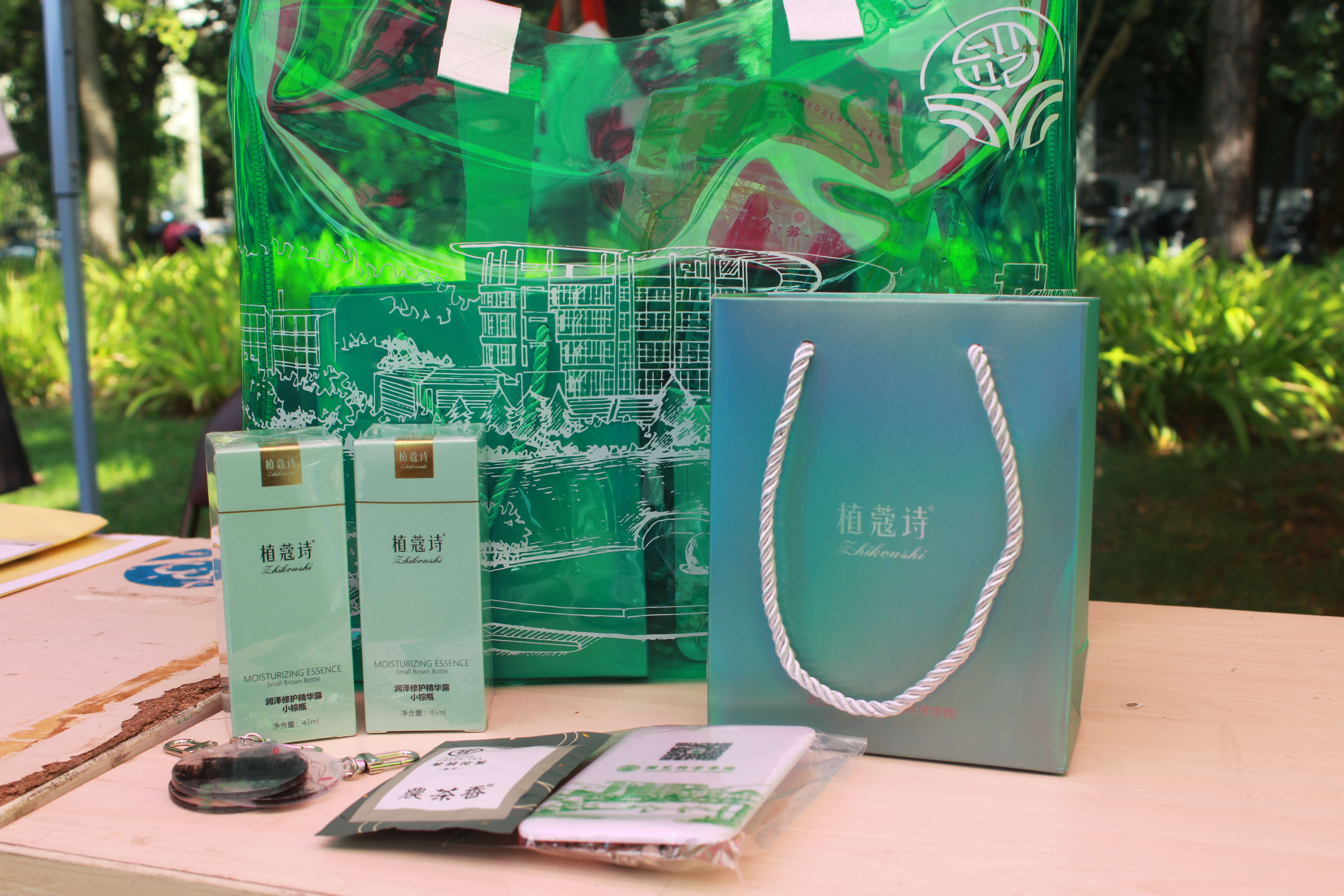 该校园艺科学学院为新生准备的礼物,最让其他学院的新生羡慕。那是一只定制的PVC手提袋,里面装有润泽修复精华露、茉莉花茶、手剥笋以及卡套和钥匙扣等。润泽修复精华露由学院教师与校外企业共同联合研制,质地柔润不粘腻,具有修复、润肤等功效;茉莉花茶等产品是学院充分发挥学科专业和师资优势,与杭州、金华等20余个县(市、区)建立科技合作关系的合作成果;手提袋、卡套等文创产品上印有学校简笔图和学院院徽,定制产品使园艺学子们更具归属感。