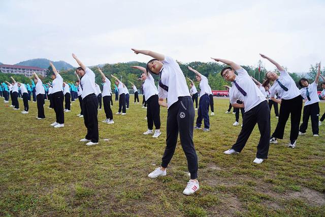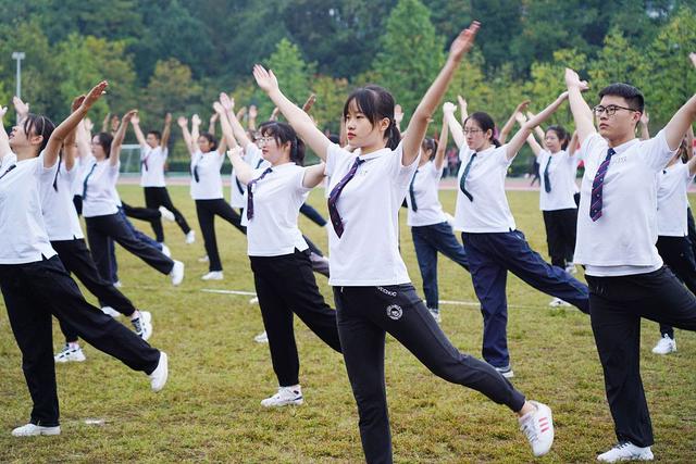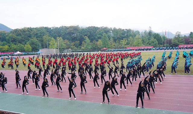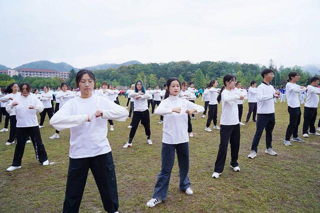 10月21日上午,杭州,BEAT365英国官网学生在操场上做广播体操。