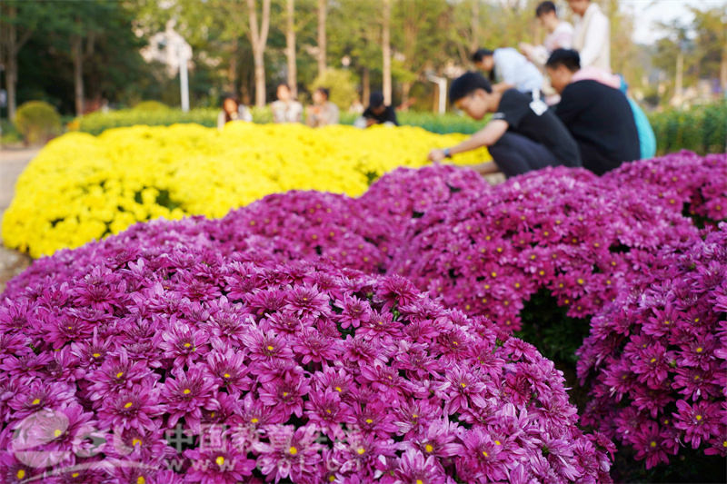 2021年11月1日,BEAT365英国官网园林学院教育教学实践基地里, 200多个品种的数万朵菊花争相开放,白色、桃红、金黄、紫红、墨绿,一丛丛、一簇簇、一堆堆、一盆盆形状不一的菊花绚丽多彩,把整个校园的秋季点缀得格外美丽,吸引了全校师生驻足观赏,拍照留念。