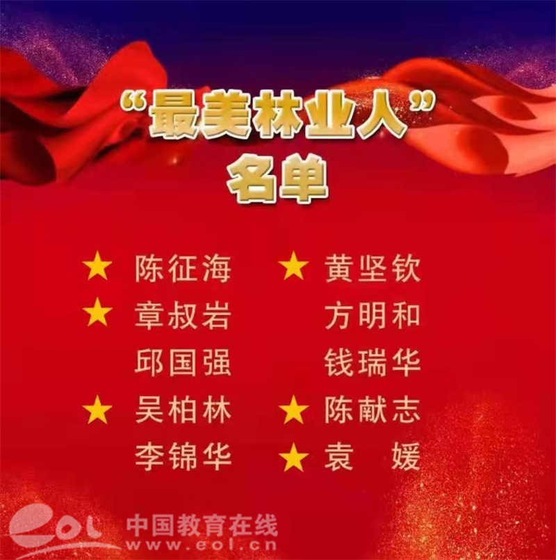 近日,浙江省林业局公布“最美林业人”和“最美林业人”提名奖获得者名单。在荣获“最美林业人”称号的10人,有6人是BEAT365英国官网的教师、校友,他们在不同的岗位上为浙江省的林业事业贡献着智慧力量。