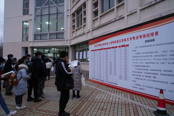 12月25日,2022年全国硕士研究生招生考试初试拉开帷幕。今年浙江15.8万人参加研究生考试,在报考人数增加26%、前期疫情影响的双重背景下,我省积极应对,确保研究生考试顺利进行。钱江晚报·小时新闻记者多校探访后了解到,目前一切正常,所有考生都已经进入考试状态,包括本次省内异地隔离需就近借考的228人,以及因隔离滞留在我省需借考的省外考生188人。