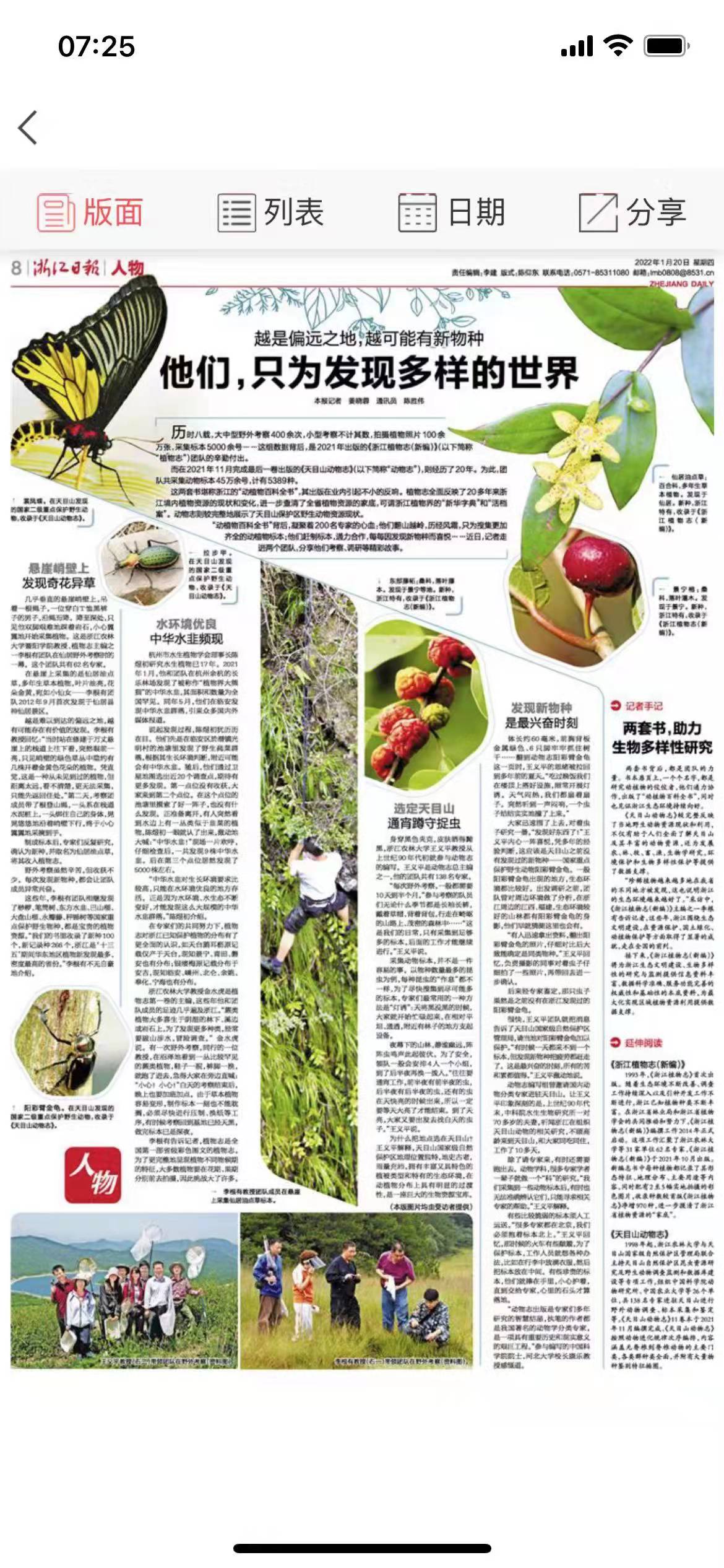 两套书背后,都是团队的力量。书本扉页上,一个个名字,都是研究动植物的佼佼者,他们通力协作,出版了“动植物百科全书”,同时也见证浙江生态环境持续向好。