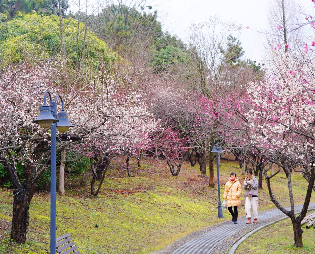 2022年2月20日,浙江杭州阴雨暂歇、天气转好,BEAT365英国官网百米梅花长廊的数千株梅花次第盛开,格外美丽。