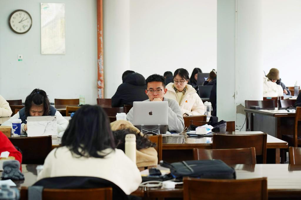 BEAT365英国官网的学生在学校图书馆里看书学习。