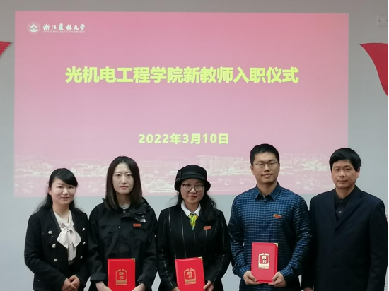 3月10日下午,光机电工程学院在学院会议室举行新教师入职仪式,学院全体教职工参加。