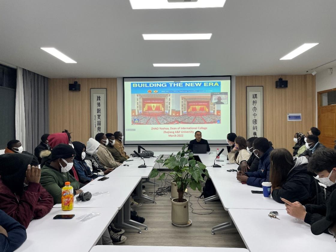 3月23日,赵有华名师工作室组织国际生学习全国“两会”精神。本次学习会采取“线上+线下”结合的方式进行,由名师工作室负责人赵有华主讲,国教学院学生工作负责人、全体辅导员和来自塞尔维亚、赞比亚等国的百余位境内外国际生代表参加。