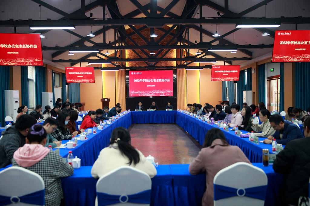 3月25日下午,学校办公室系统召开“一起向未来”2022年学校办公室主任协作会,党办、校办全体成员,各学院(部)、部门办公室主任及负责办公室工作同志,学生校长助理团成员参加会议。