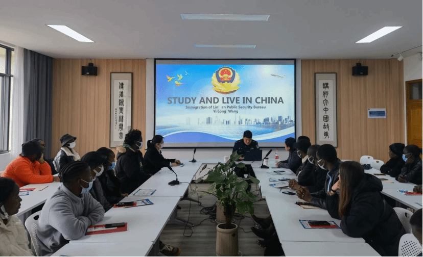 启动仪式后,临安分局民警王益龙受邀为国际生代表进行出入境、禁毒、防诈骗等方面的安全知识讲座。他通过知识讲授、典型案例分析等方式,用中英双语为国际生仔细讲解了相关知识,督促国际生在华期间严格遵守中国法律法规和校纪校规,并预祝他们顺利完成学业。