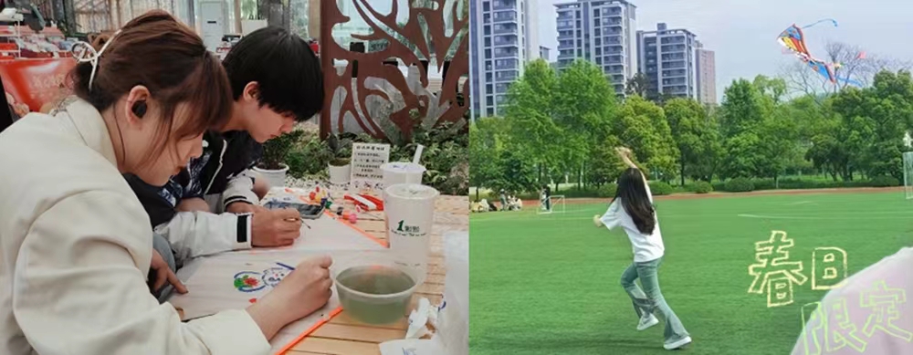 风筝设计活动中,同学们在空白的风筝画布上大胆创作,将自己对疫情春天的呼唤、对童年天真无邪的回味、对友情与青春永驻的期许、对战胜困境的决心等千万思绪寄托在小小的风筝上,随风送上青天。